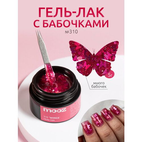 НАЙТИ ВЫГОДНЕЕ - Гель-лак для ногтей с бабочками и сердечками от MOOZ №310 Wings, вишневый, 5 грамм