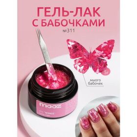 НАЙТИ ВЫГОДНЕЕ - Гель-лак для ногтей с бабочками и облачками от MOOZ №311 Wings, нежно-розовый, 5 грамм
