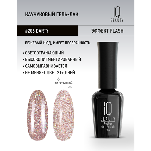 НАЙТИ ВЫГОДНЕЕ - Каучуковый гель-лак IQ Beauty 206 Darty, самовыравнивающийся, 10 мл