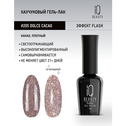 НАЙТИ ВЫГОДНЕЕ - Каучуковый гель-лак IQ Beauty 205 Dolce Cacao, самовыравнивающийся, 10 мл