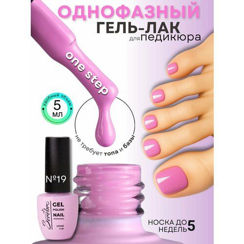 НАЙТИ ВЫГОДНЕЕ - Однофазный гель-лак розовый Serebro для педикюра №19, 5 мл