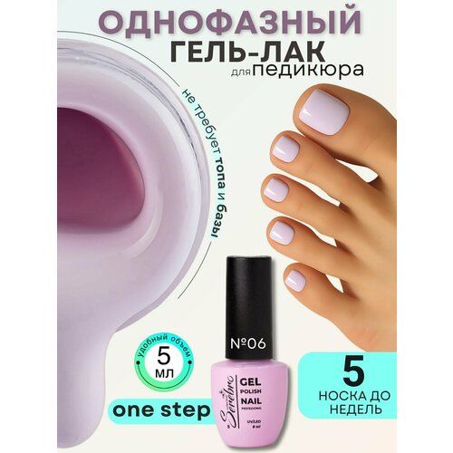 НАЙТИ ВЫГОДНЕЕ - Однофазный гель-лак светло-сиреневый Serebro для педикюра №06, 5 мл