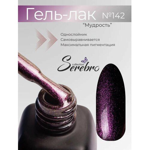НАЙТИ ВЫГОДНЕЕ - Гель-лак для ногтей Serebro Полуночный свет №142, с розовым шиммером, 11 мл.