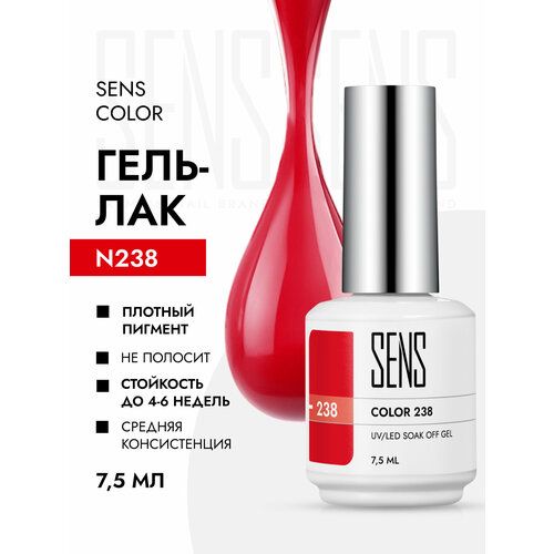 НАЙТИ ВЫГОДНЕЕ - Гель-лак Sens GEL COLOR 238- классический красный, глянцевый, 15мл
