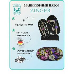 НАЙТИ ВЫГОДНЕЕ - Маникюрный набор на молнии, ZINGER, MS-7104, 6 предметов, чехол цветы, фиолетовый