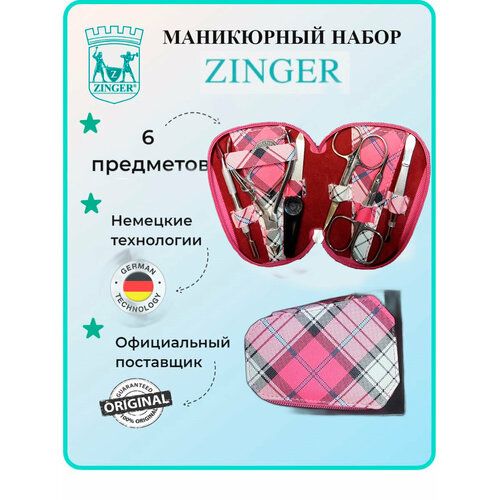 НАЙТИ ВЫГОДНЕЕ - Маникюрный набор на молнии, ZINGER, трапеция, MS-7103, 6 предметов, чехол клетка розовая