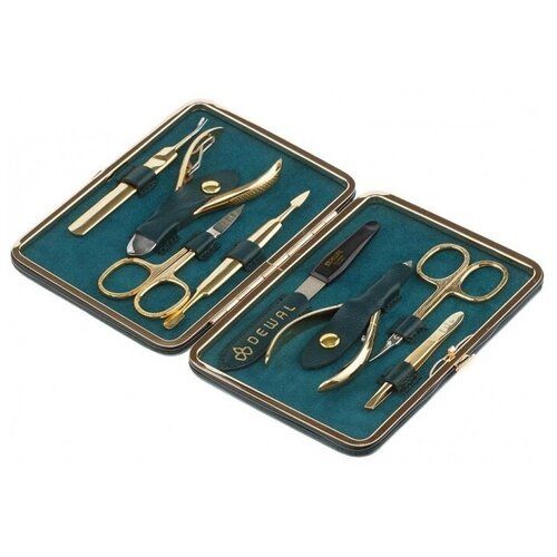 Маникюрный набор DEWAL серии "Современная классика" 8 предметов, футляр натуральная кожа, цвет зеленый.