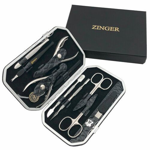 НАЙТИ ВЫГОДНЕЕ - Маникюрный набор Zinger MSFE-804, 10 предметов, серебристый/черный глянцевый