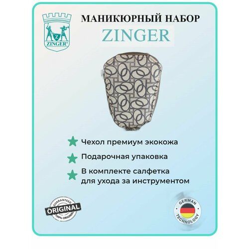 НАЙТИ ВЫГОДНЕЕ - Маникюрный набор на молнии, ZINGER, трапеция, MS-7103, 6 предметов, чехол клетка/овалы, коричневый