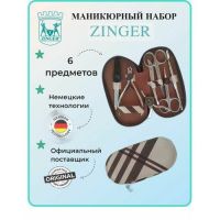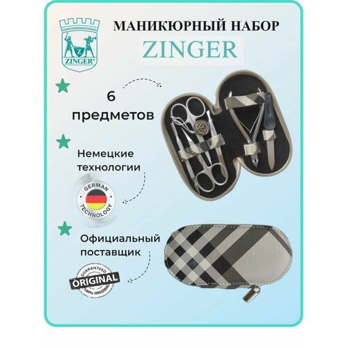 НАЙТИ ВЫГОДНЕЕ - Маникюрный набор на молнии, ZINGER, MS-7104, 6 предметов, чехол клетка оливковая