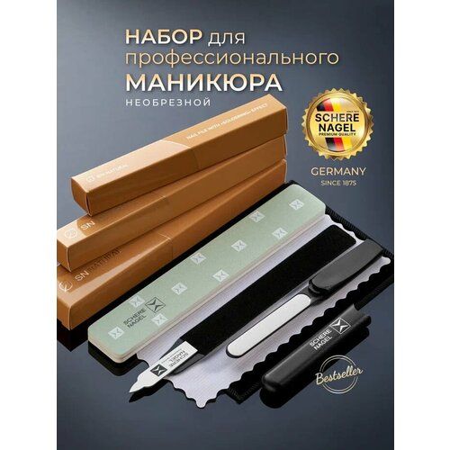 Маникюрный набор № 1 SCHERE NAGEL для необрезного маникюра 3 предмета: умная пилка, керамический карандаш, полировка 102077438181