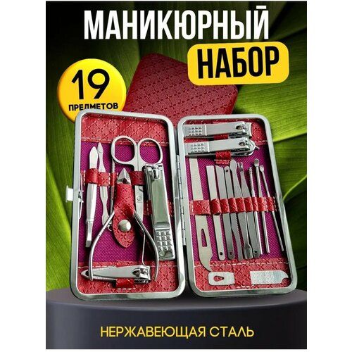 НАЙТИ ВЫГОДНЕЕ - Маникюрный набор красный мужской, женский 19 предметов / для ухода за ногтями и кожей лица