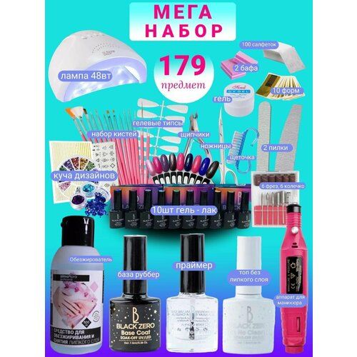 Большой набор для маникюра, педикюра и наращивания ногтей для домашнего и профессионального использования с LED - Лампой. Подходит как для новичка так и для профессионального мастера. Маникюрный Набор включает в себя 179 предмета, необходимых для идеального маникюра.