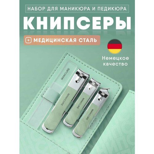 НАЙТИ ВЫГОДНЕЕ - Маникюрный набор подарочный 3 в 1 кусачки для ногтей и пилка, мятный