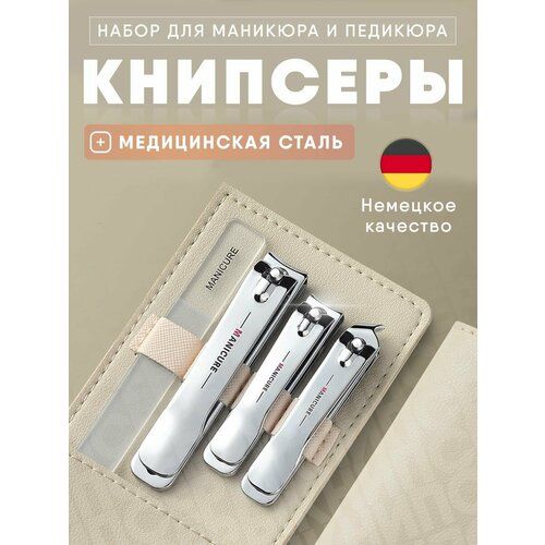НАЙТИ ВЫГОДНЕЕ - Маникюрный набор подарочный 3 в 1 кусачки для ногтей и пилка, бежевый