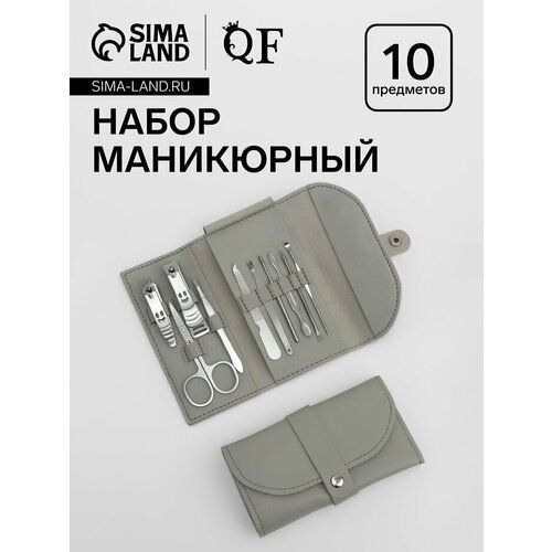 Набор маникюрный «Люси», 10 предметов, кожзам-чехол, цвет серый