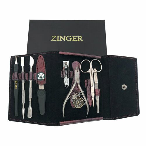 НАЙТИ ВЫГОДНЕЕ - Маникюрный набор Zinger MS-1403, 8 предметов, натуральная кожа, бордовый перламутровый