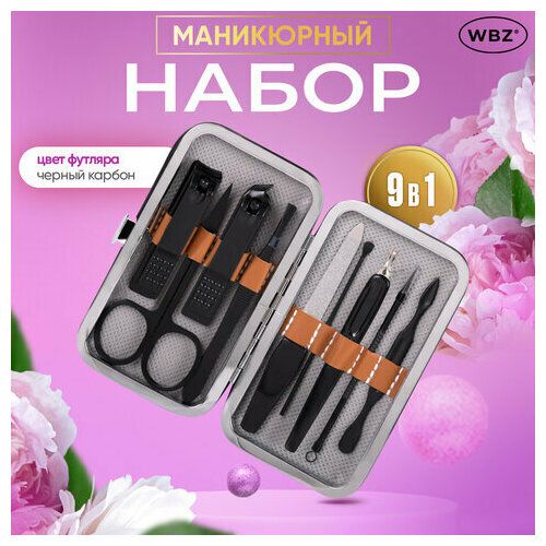 НАЙТИ ВЫГОДНЕЕ - Универсальный набор для маникюра и педикюра 9 в 1 в футляре, MINI, черный карбон, WBZ, 609490