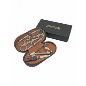 НАЙТИ ВЫГОДНЕЕ - Маникюрный набор Zinger 7104, 6 предметов, медицинская сталь, серебристый/коричневый клетка