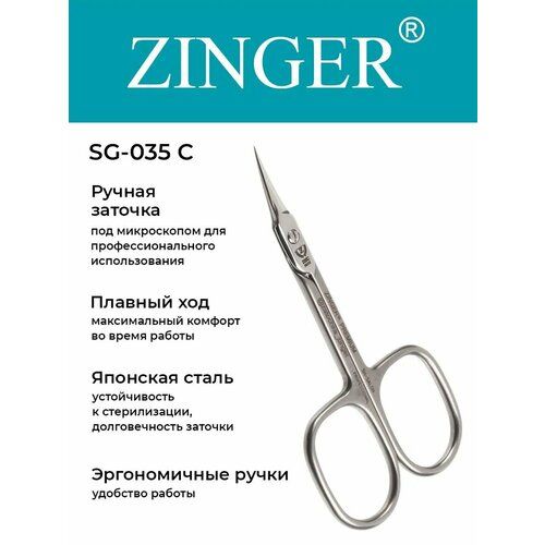 Ножницы универсальные Zinger SG-035C — превосходный инструмент премиум-класса. Великолепно заточенные, выполненные из превосходной стали ножницы для отличного маникюра. Общая длина ножниц 90 мм. Длина лезвия 25 мм. Покрытие металла — серебристое.