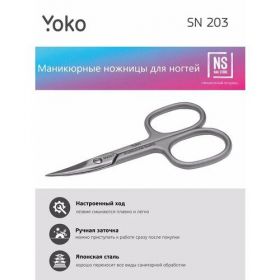 SN 203 Ножницы маникюрные для ногтей YOKO SN203. Профессиональные маникюрные ножницы Yoko Premium Series выполнены из высоколегированной японской стали высокой прочности - 53 HRS. Обработка и заточка лезвий производится вручную профессиональными мастерами. Особое внимание при изготовлении инструмента уделяется форме полотен, конструкции сустава и настройке хода, так как именно от этих параметров зависит безупречная работа инструмента. Все ножницы проходят обязательные процедуры контроля качества и соответствуют стандартам ISO 9001. Использование и уход за инструментом.- применяйте ножницы только по назначению, не режьте твёрдые предметы, не используйте в бытовых целях. - не используйте дезинфицирующие средства с pH менее 7. Они могут вызвать коррозию. SN 203, SN-203.