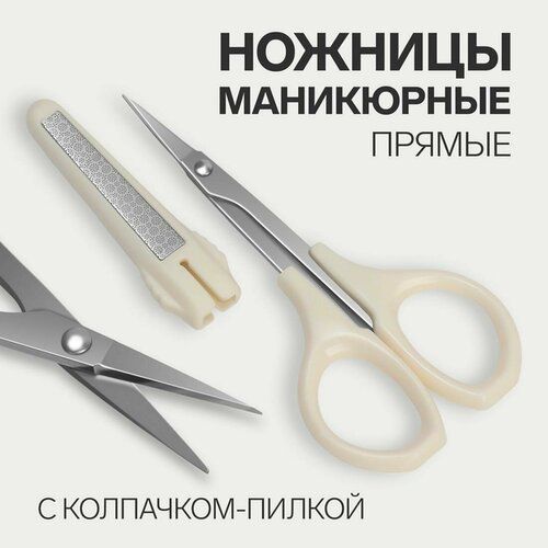 НАЙТИ ВЫГОДНЕЕ - Ножницы маникюрные, с колпачком - пилкой, прямые, 9.6 см, белые, серебристые
