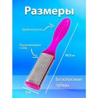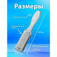 Универсальная двусторонняя металлическая терка пилка для ног - идеальный инструмент для обработки пяток и стоп как женщин, так и мужчин. Лазерная терка для пяток и ног легко удаляет огрубевшую кожу, трещины, натоптыши и мозоли, используется профессионалами. Металлическая терка щетка для пяток надежна и практична, покрытие из нержавеющей стали обеспечит долгое использование и сохранит остроту лезвий. Скребок для ног прекрасно работает на распаренной коже, удаляя все лишнее. Рекомендуем после обработки стоп нанести средство кератолитик для пяток, либо крем для гладких ног пяток с мочевиной.