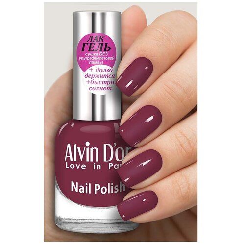 Лак-гель для ногтей Alvin Dor: косметическое средство, предназначенное для нанесения на ногти пальцев рук, а также ног. Лак Гель для ногтей Alvin Dor: основа любого современного маникюра. Выбирая покрытие разных цветов, женщины не только подчёркивают красоту ногтевой пластины и защищают её от воздействия вредной химии и механического влияния, но также стремятся изменить свой образ, добавив яркие краски и тона. Создавайте салонный маникюр в домашних условиях. Гелевая текстура лака с глянцевым эффектом: - Идеально ровное нанесение; - Устойчивое глянцевое покрытие; - Быстрое высыхание без специального оборудования; - Яркие трендовые оттенки; - Не содержит вредных веществ: формальдегид, толуол, дибутилфталат. Красивой девушку делает не только прическа, косметика или наряд, но в целом завершенный образ. А таковой невозможно себе представить без аккуратных ногтей, украшенных лаком от Alvin Dor