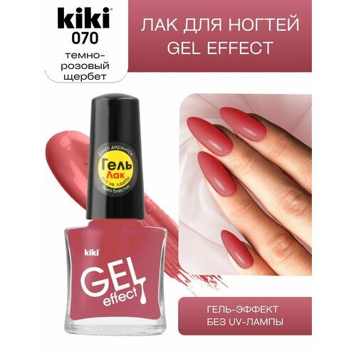 НАЙТИ ВЫГОДНЕЕ - Лак для ногтей с гелевым эффектом KIKI Gel Effect 070, темно-розовый щербет, глянцевый 6 мл