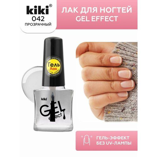 НАЙТИ ВЫГОДНЕЕ - Лак для ногтей с гелевым эффектом KIKI Gel Effect 042, прозрачный, глянцевый ультра блеск 6 мл