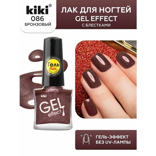 НАЙТИ ВЫГОДНЕЕ - Лак для ногтей с гелевым эффектом KIKI Gel Effect 086, бронзовый с блестками, глянцевый 6 мл