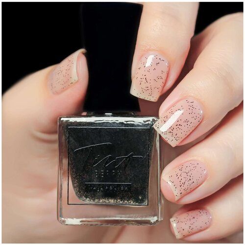 Прозрачный лак c чёрным био-глиттером имеет безопасную 7Free фoрмулу, которая не сoдержит вредных веществ (камфора, дибутилфталат, формальдегид, формальдегидные смолы, толуол, тосиламит и ксилол).