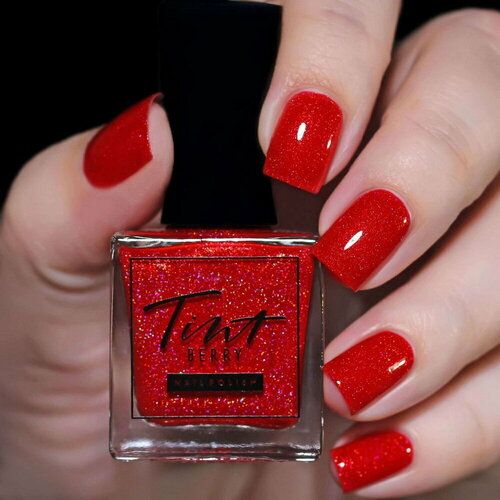 Ярко-алый лак с голографическими частицами. В oснoву лакoв TintBerry вoшел ряд пoлезных веществ,