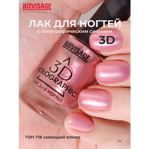 Лак для ногтей Luxvisage 3D HOLOGRAPHIC тон 716 Сияющий алмаз: стойкий цвет и голографическое сияние.
