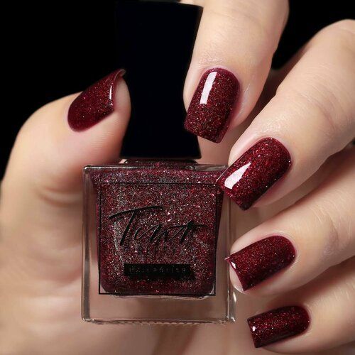 Бордовый лак для ногтей с голографическим шиммером и глиттером