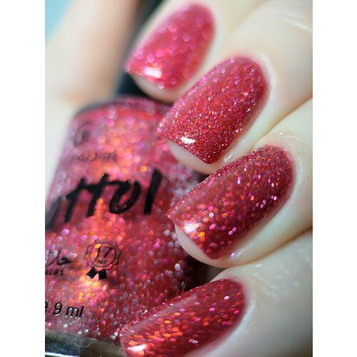 Яркий ягодно-красный лак с эффектом сияния✔ Лак для ногтей с блестками – насыщенный цвет с мерцающим эффектом