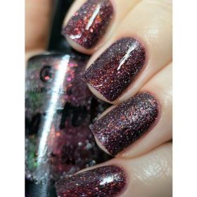 черная вуаль с серебряным и красным светоотражающим глиттером и оранжево-красным пигментом Аврора, уходящим в зеленый отлив.Допускается нанесение в 1-3 тонких слоя. Финиш песочный.