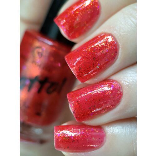 Grattol Courage – сигнально-красный лаковый гель с золотистыми переливами и эффектом мерцания