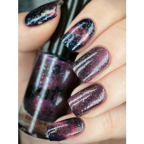 чернично-бордовое желе с золотой, бирюзовой, синей и фиолетовой поталью с медно-розовым магнитным отливом.Допускается нанесение в 1-3 тонких слоя.