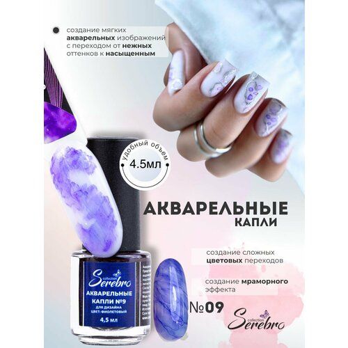 НАЙТИ ВЫГОДНЕЕ - Лак для дизайна ногтей Serebro Акварельные Капли №09, фиолетовый, 4,5 мл.