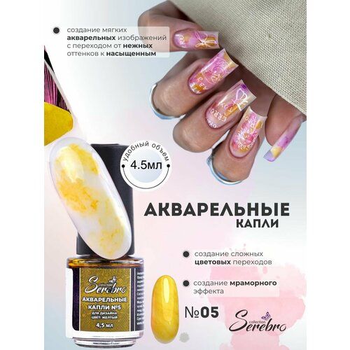 НАЙТИ ВЫГОДНЕЕ - Лак для дизайна ногтей Serebro Акварельные Капли №05, жёлтый, 4,5 мл.