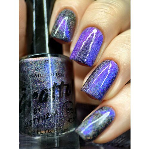 Grattol Ultraviolet - черное стекло с сине-фиолетово-розовым магнитным пигментом и голографическим шиммером.Допускается нанесение в 2-3 тонких слоя, либо на комплиментарный оттенку лак в один слой.