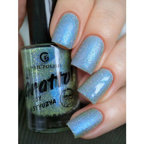 Grattol, Лак для ногтей песочный "Matcha? Anchan" - прозрачный лак со светоотражающим глиттером цвета лайм и синим шиммером.