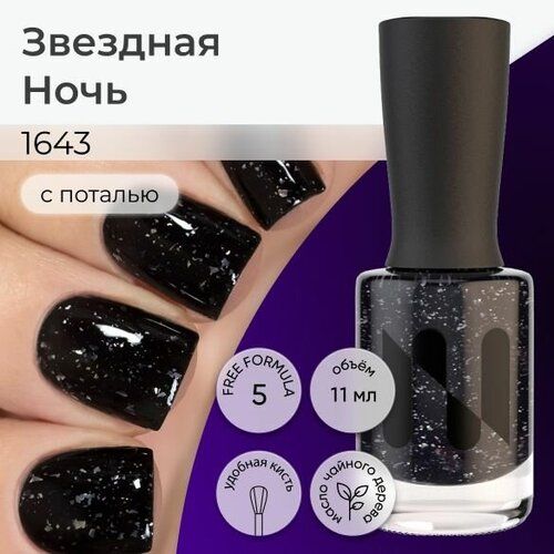 НАЙТИ ВЫГОДНЕЕ - Лак для ногтей Звездная Ночь, черный с серебряной поталью, 11 мл