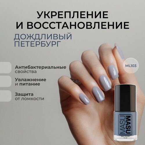 НАЙТИ ВЫГОДНЕЕ - Лак MASU MASU Укрепляющий Дождливый Петербург, холодный серый, 15 мл