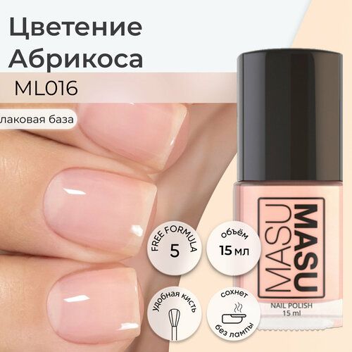 НАЙТИ ВЫГОДНЕЕ - Эмалевый лак для ногтей MASU MASU Цветение Абрикоса, полупрозрачный, база для лака, 15 мл