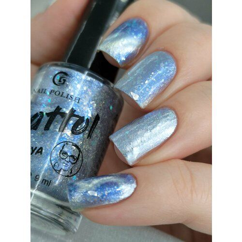 Лак для ногтей сушка без лампы Grattol Lick the icicle - В прозрачной базе синий шиммер, магнитный серебристый пигмент и серебристая слюда с шифтом в бирюзу.