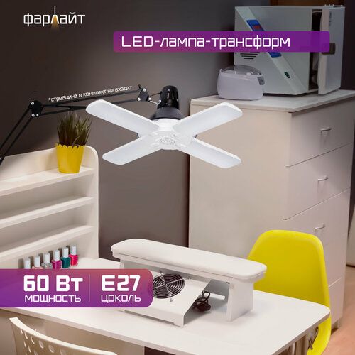 Лампа для маникюра Фарлайт - это светодиодная лампа с цоколем E27 и мощностью 60 Вт. Она предназначена для использования в офисах, складах, гаражах и других помещениях.