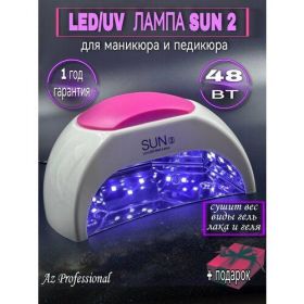 Лампа SUN 2 (48W) в белом корпусе — гибридная модель имеющая полностью металлический корпус и дно внутри ультрафиолетовая и светодиодная. Мощность 48 Вт и возможности лампы Sun 2 нового поколения позволяют применять её для работы с любыми видами гелей и гель-лаков, в том числе сильнопигментированными. Расположение светодиодов и скорость сушки обеспечивают равномерную быструю полимеризацию даже толстого слоя покрытия на всех ногтях. Зеркальное дно на магнитах снимается, поэтому лампа удобна для маникюра и педикюра. Таймер позволяет быстро устанавливать время. Благодаря сенсорному датчику можно не использовать кнопки при просушке покрытия на каждом ногте — лампочки загорятся при поднесении руки. Максимальная работа тамера при сенсорном включении лампы - 120 сек. Дно съемное на магнитах. Режим "Low heat mode" (кнопка 90s) - для просушки гелей, сначала мощность 24 Вт, далее 36 Вт и последнее 48Вт, таймер 90 сек. Эта лампа нового поколения изготовлена по новейшим технологиям и последним разработкам, модель предназначена как для профессионального, так и для домашнего использования. Одна и та же поверхность высушивается в два раза быстрее, и один слой лака реально высушить от 10 секунд (зависит от марки гель-лака, цветового пигмента). Срок службы лампы составляет свыше 50 000 часов, что также значительно выше, чем показатели ультрафиолетовых ламп.