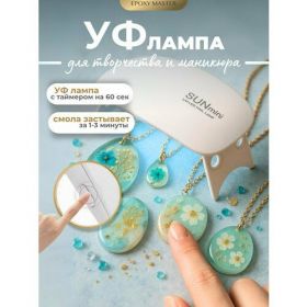 Мини УФ-сушилка с таймером - это идеальный инструмент для мастеров и любителей, работающих с эпоксидной смолой. Эта портативная лампа разработана специально для отверждения смолы, обеспечивая быстрое и качественное высыхание ваших изделий. УФ-лампа позволяет значительно ускорить процесс работы, оставляя ваши творения идеально гладкими и готовыми к дальнейшей обработке.